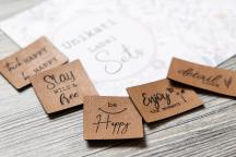Zestaw zawiera 10 laserowo grawerowanych naszywek w kolorze brązowej faux skóry (wegańskiej).